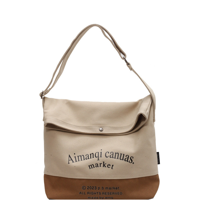 Canvas bag women’s large capacity new style contrasting color summer single shoulder crossbody bag popular commuter tote bag