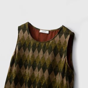 Silk fragrant cloud yarn round neck pocket printed loose vest dress women’s new mulberry silk long vest dress Fabric name: Silk Pattern: diamond pattern Technology: Printing Main fabric composition: mulberry silk