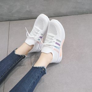 Summer colorful striped low-top sneakers, casual and versatile white shoes, fly-woven mesh mesh shoes, flat-soled students Upper material: fly knitted thread Sole material: rubber Applicable gender: Female Upper height: low Sole technology: injection molded shoes Wearing method: front tie Popular elements: sewing thread Function: anti-slip, wear-resistant